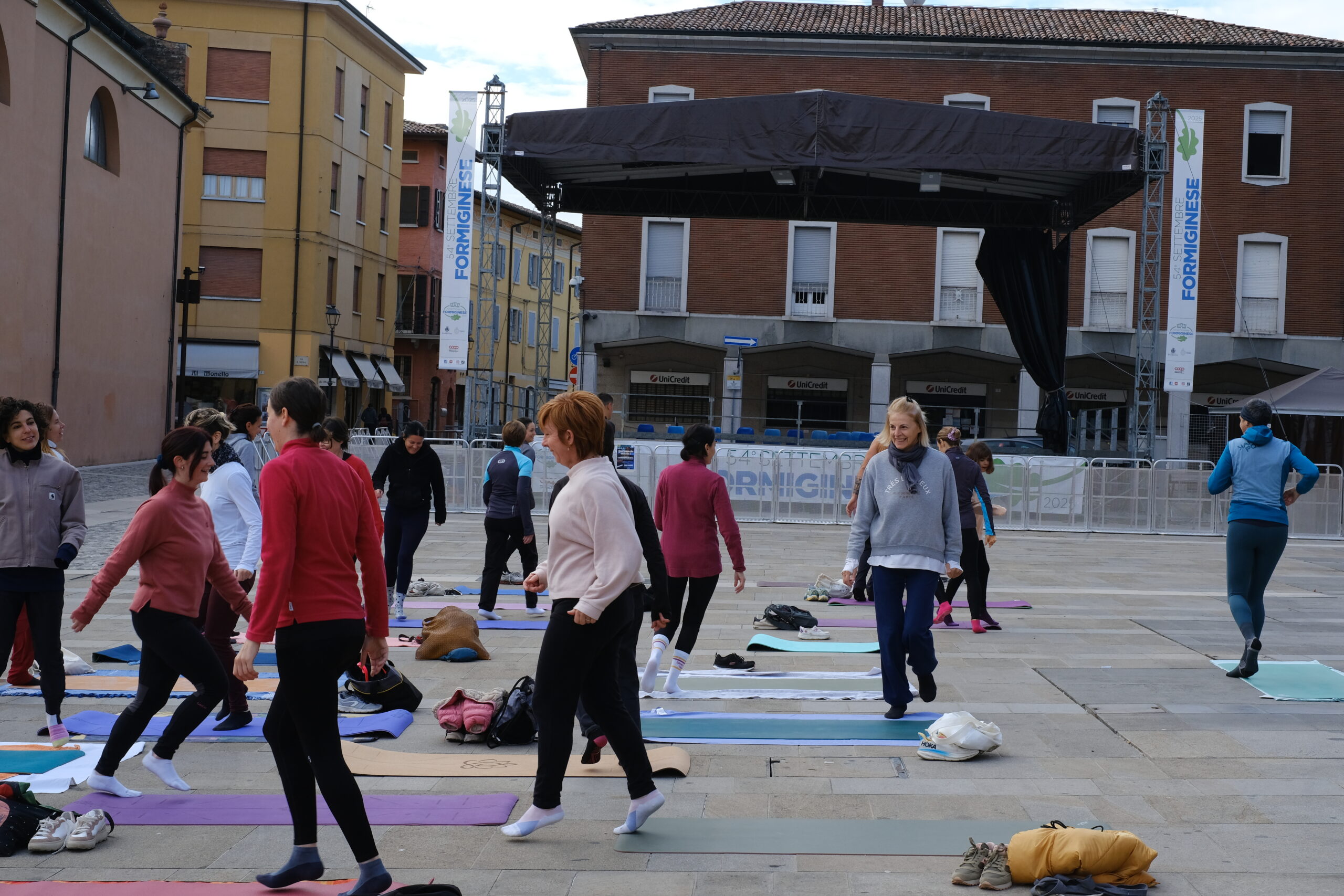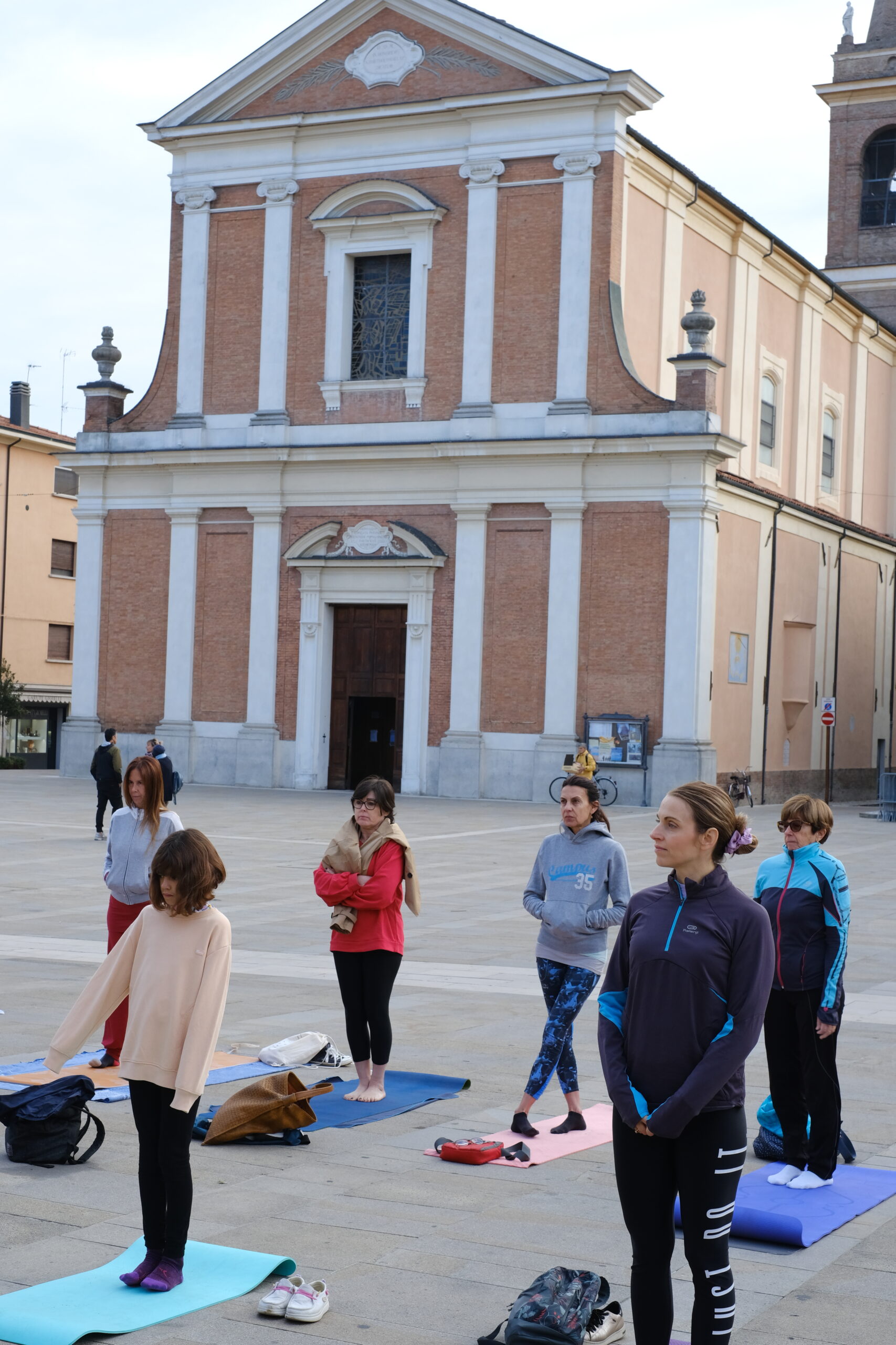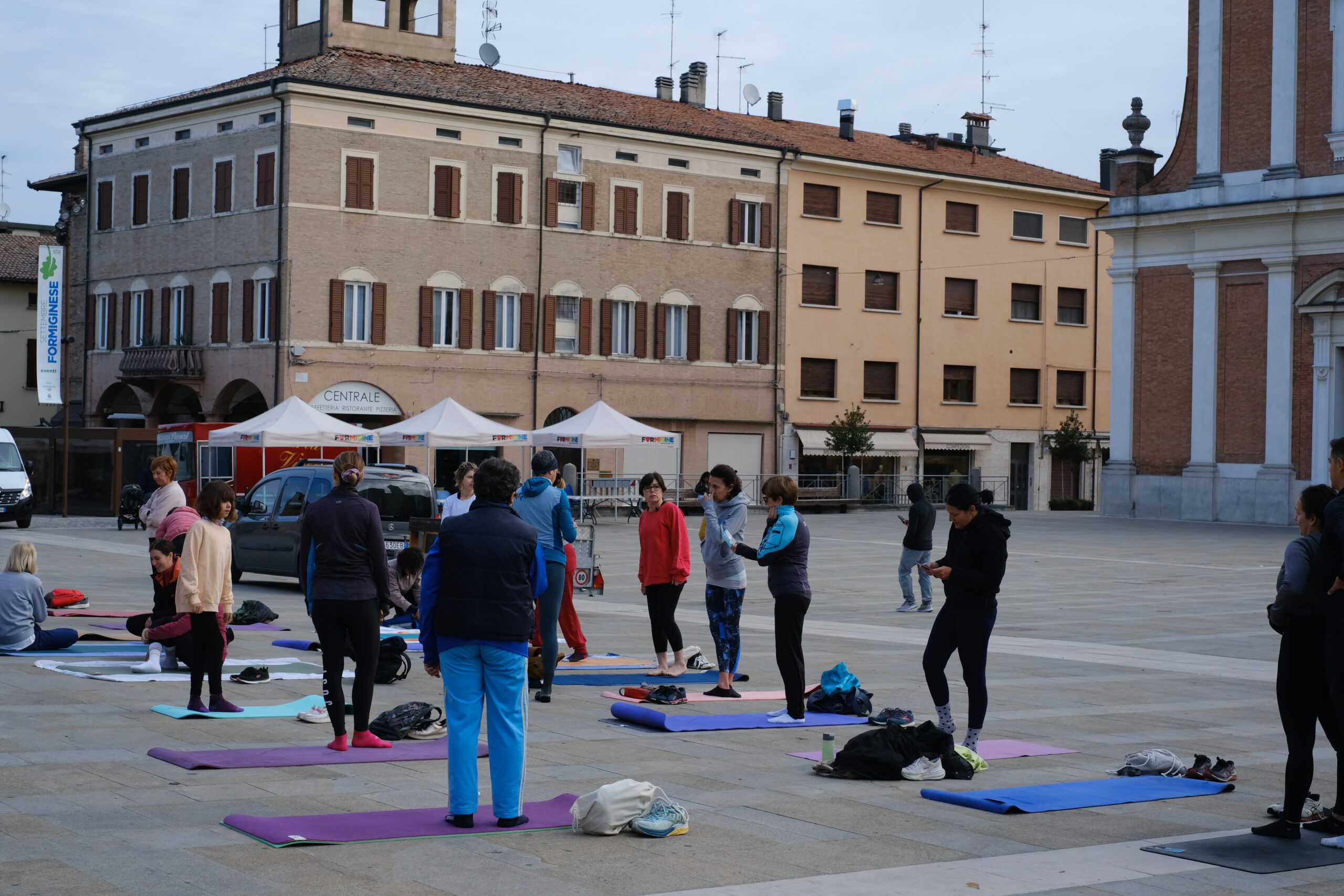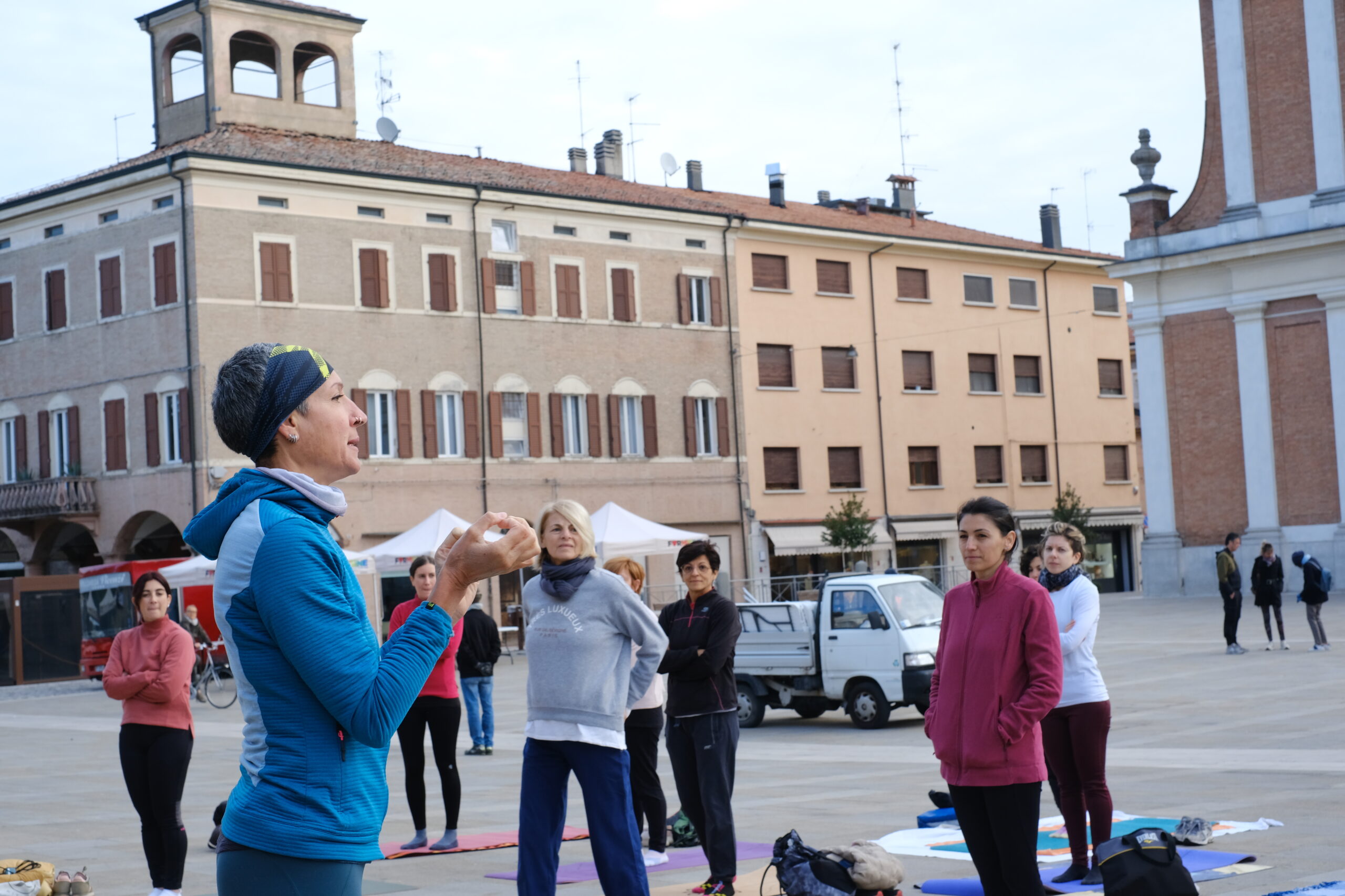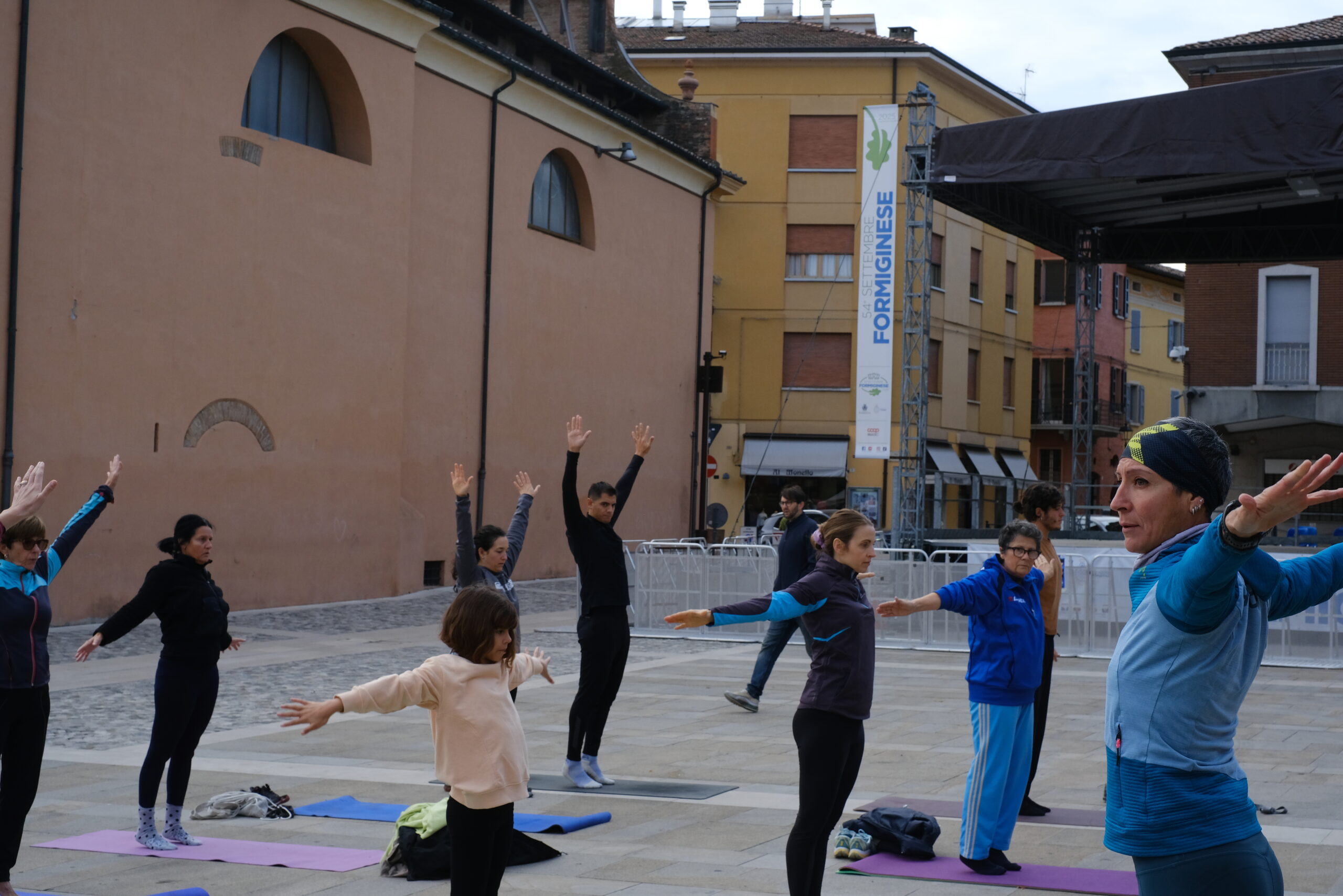 Da quando ho aperto il mio piccolo studio di yoga a Formigine, ogni giorno, con dedizione e gratitudine, cerco di creare una piccola comunità di persone che trovano un angolo di rifugio e benessere. Un luogo dove sentirsi accolti, in famiglia. E il sabato del Festival ne ho avuto la conferma: nonostante l’aria frizzante del mattino, una ventina di persone si sono presentate alle 9:00 per praticare yoga insieme a me, riempiendo la piazza di sorrisi e respiro condiviso.