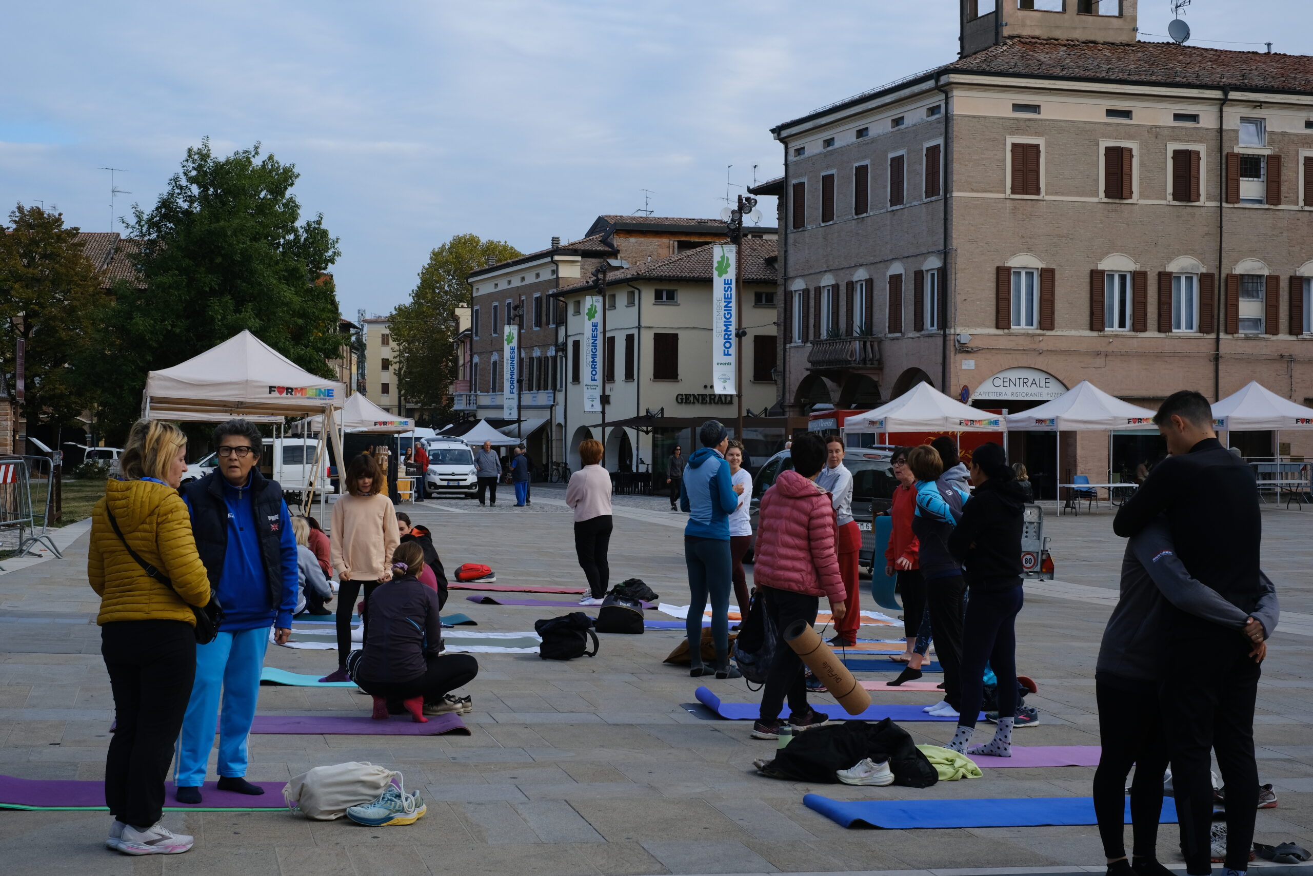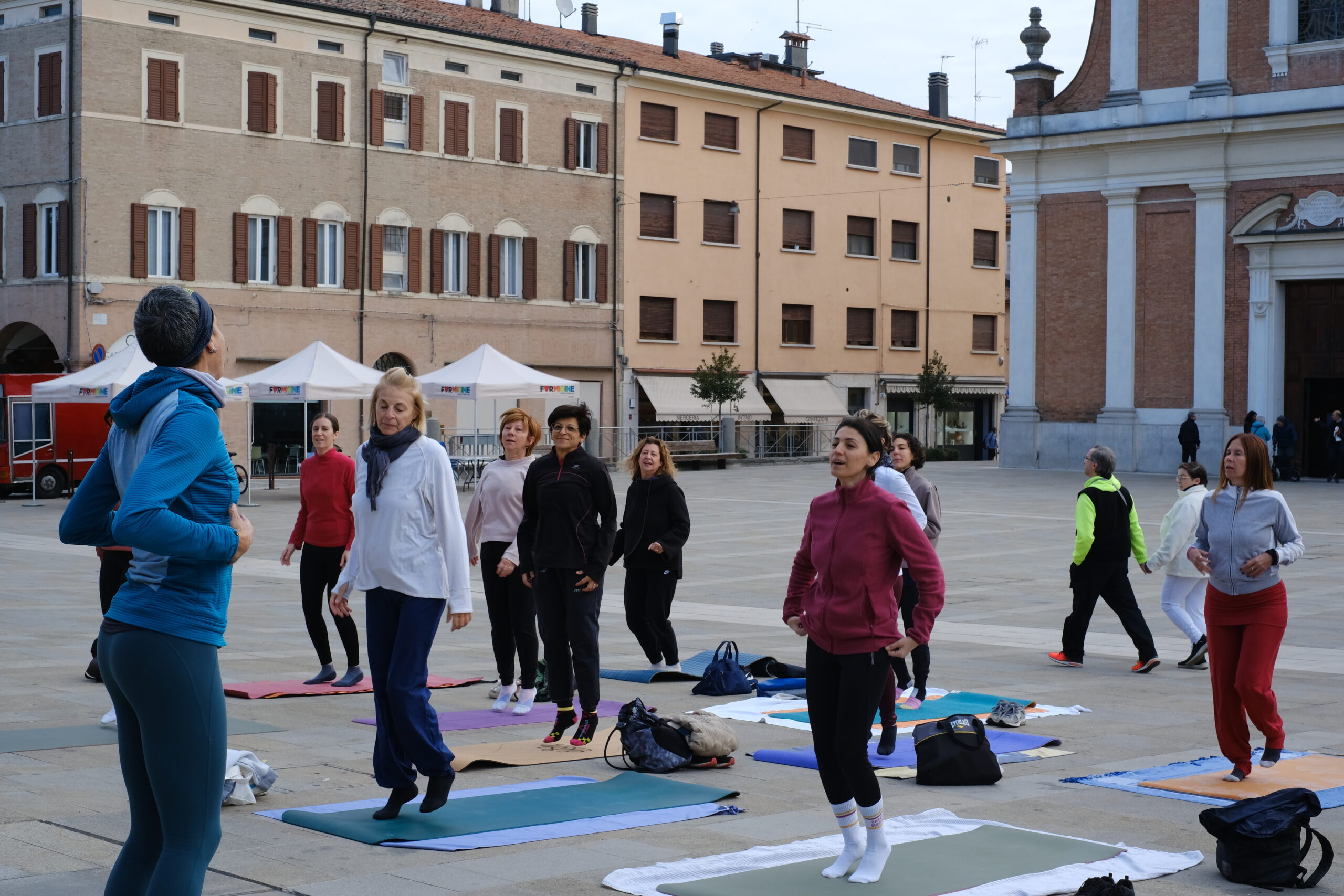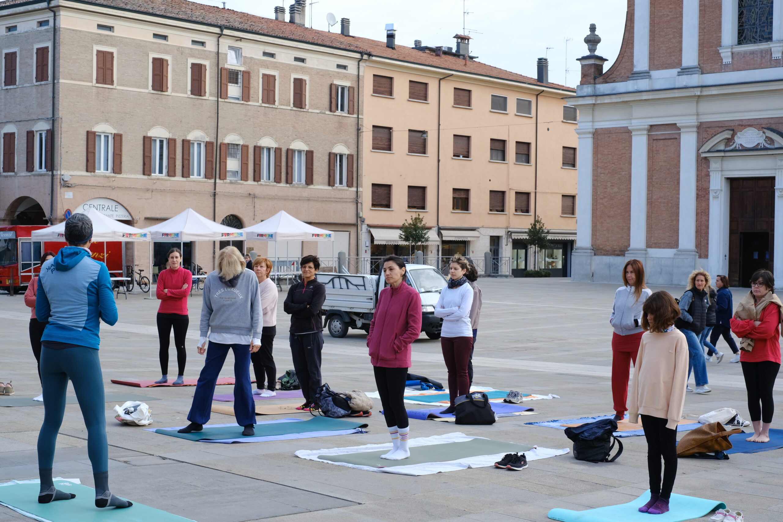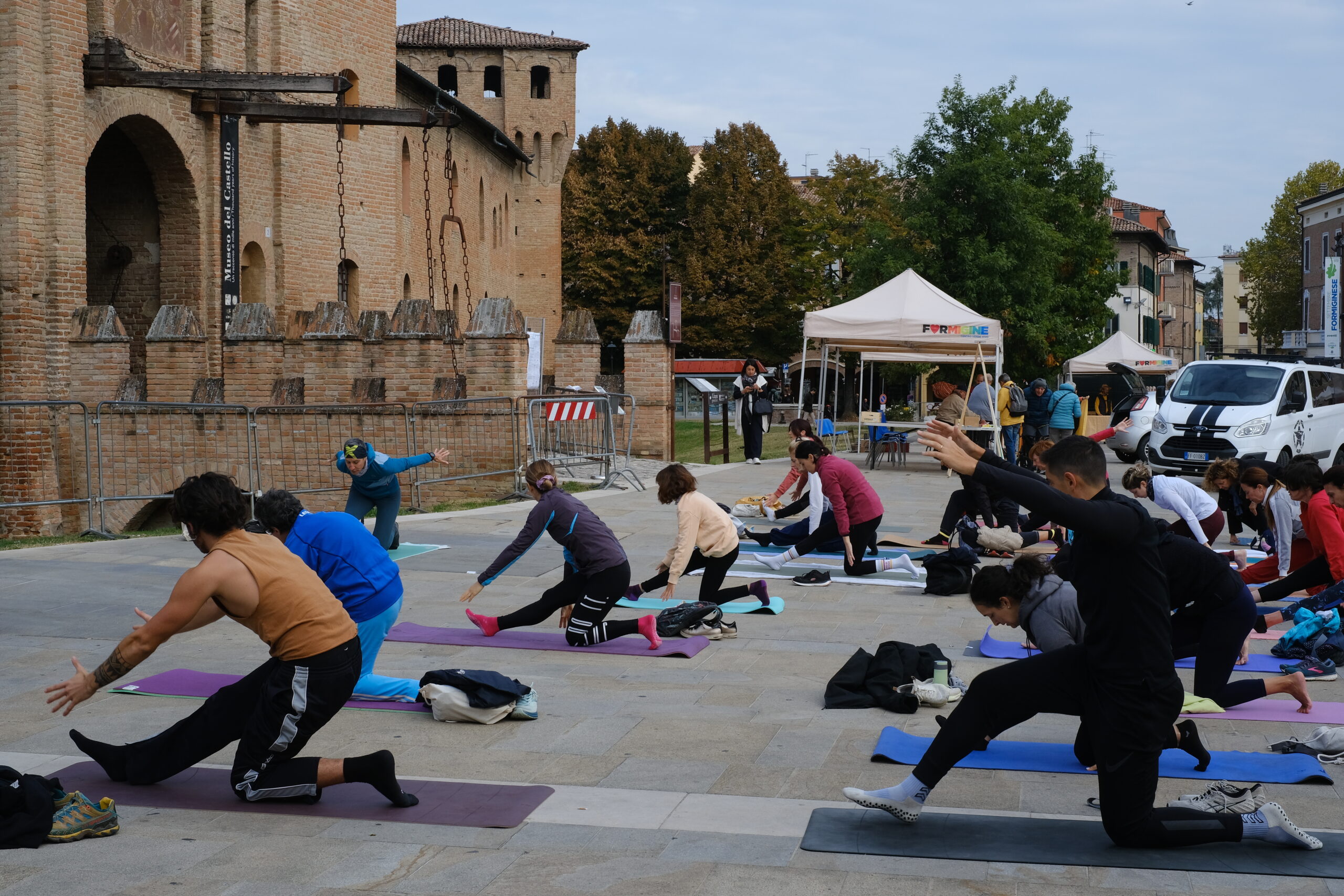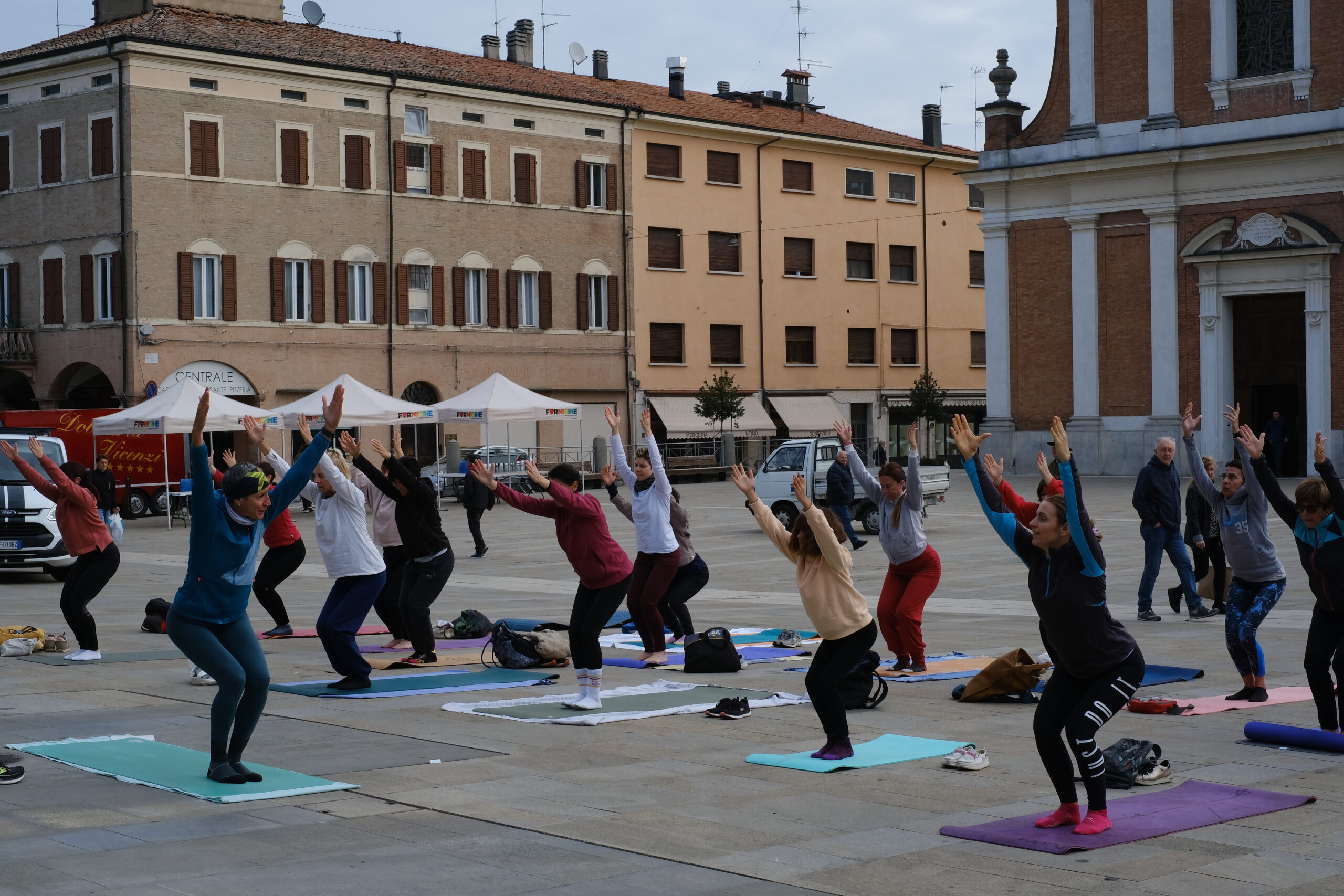 Da quando ho aperto il mio piccolo studio di yoga a Formigine, ogni giorno, con dedizione e gratitudine, cerco di creare una piccola comunità di persone che trovano un angolo di rifugio e benessere. Un luogo dove sentirsi accolti, in famiglia. E il sabato del Festival ne ho avuto la conferma: nonostante l’aria frizzante del mattino, una ventina di persone si sono presentate alle 9:00 per praticare yoga insieme a me, riempiendo la piazza di sorrisi e respiro condiviso.