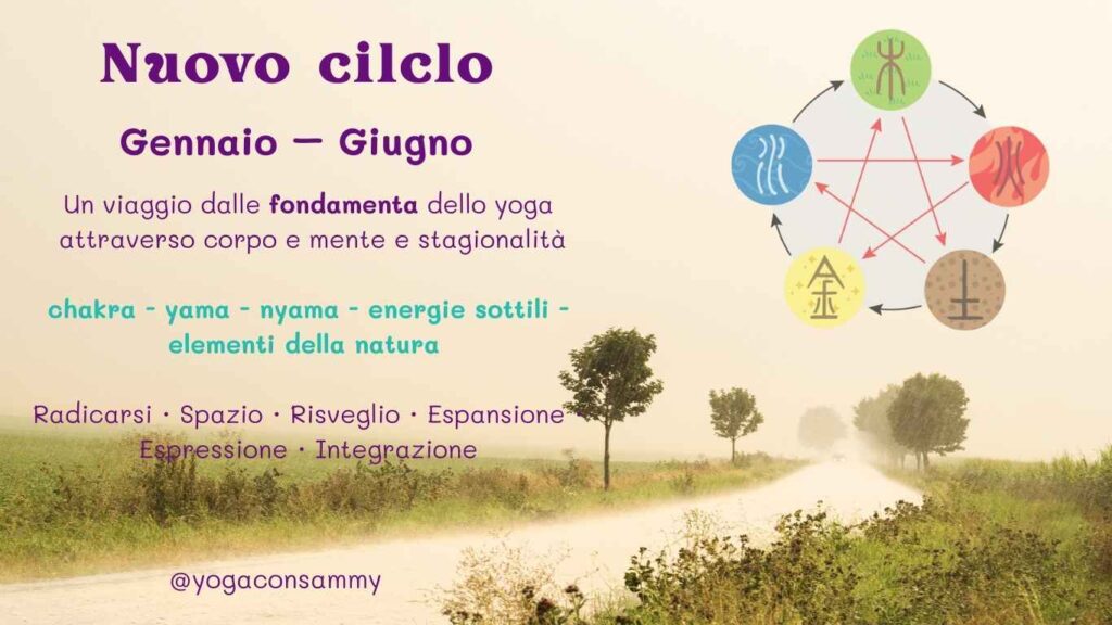 Per questo ho immaginato il percorso da gennaio a giugno come un viaggio graduale, ispirato agli elementi della natura e ai principi di Yama e Niyama, che nello yoga rappresentano una bussola preziosa per orientare la pratica e la vita.